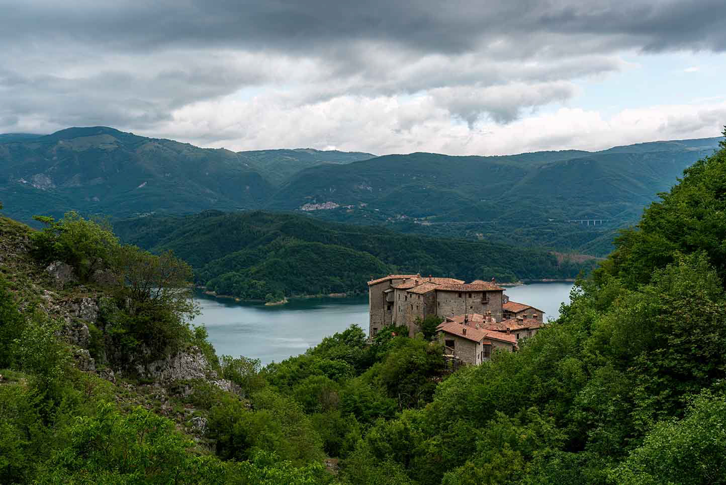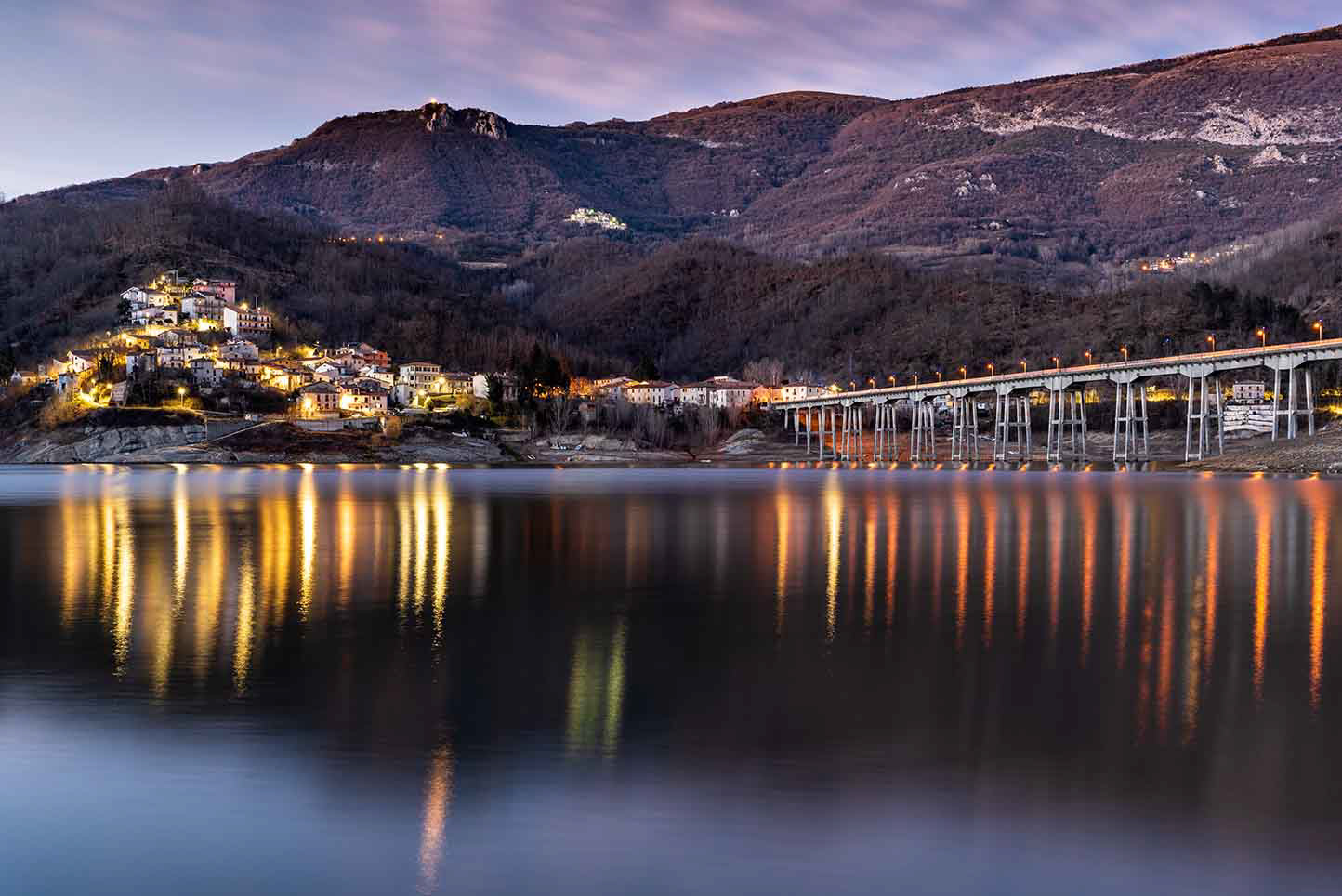 Il Lago del Salto è un incantevole specchio d'acqua circondato da una natura selvaggia, tra boschi e montagne dell'Appennino laziale, offrendo panorami suggestivi e un'atmosfera tranquilla.